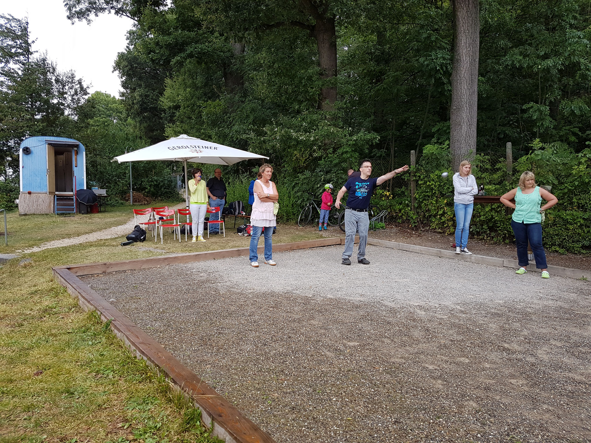17 Teilnehmer aus unterschiedlichen Vereinen und Familienmitgliedern bestritten das Hobby-Bouleturnier. Das Turnier konnte leider nicht zu Ende gespielt werden, da es gegen 19 Uhr zu regnen begann. Nach 3 gespielten Begegnungen stand Matze als Sieger fest. Platz 2 belegte Michael Raabe und Dennis wurde Dritter.