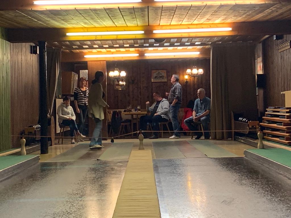 Nach erneuter Durstlöschung und Powernap ging es um 16 Uhr auf die Kegelbahn. Große-, Kleine HNr., Fuchsjagd, 101 … waren die Renner. Der König der Bandentuschierer war unser BM – Banden Michael.