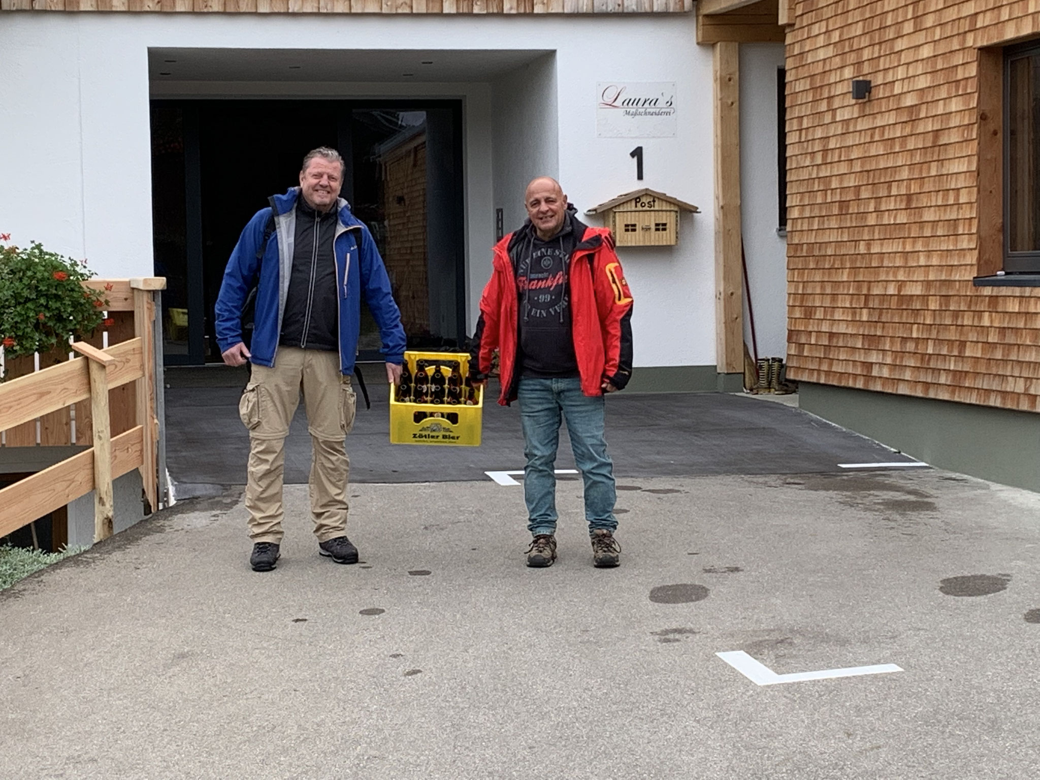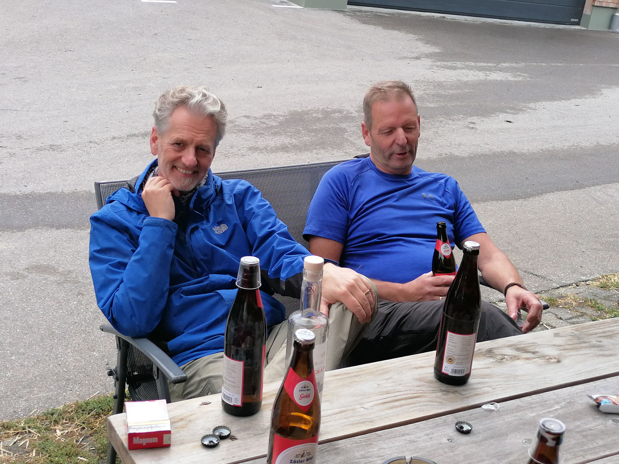 Die ersten Teilnehmer trafen bereits um ca. 13:30 Uhr in Niedersonthofen ein. Das Wetter war perfekt, nur unsere Unterkunft war noch geschlossen. Kurzer Hand entschlossen wir uns in die ca. 1km entfernte Sonne nieder zu lassen. Mit leckerem Wurstsalat, Hamburger und Pommes sowie etwas Bier und Kuchen haben wir uns gestärkt.