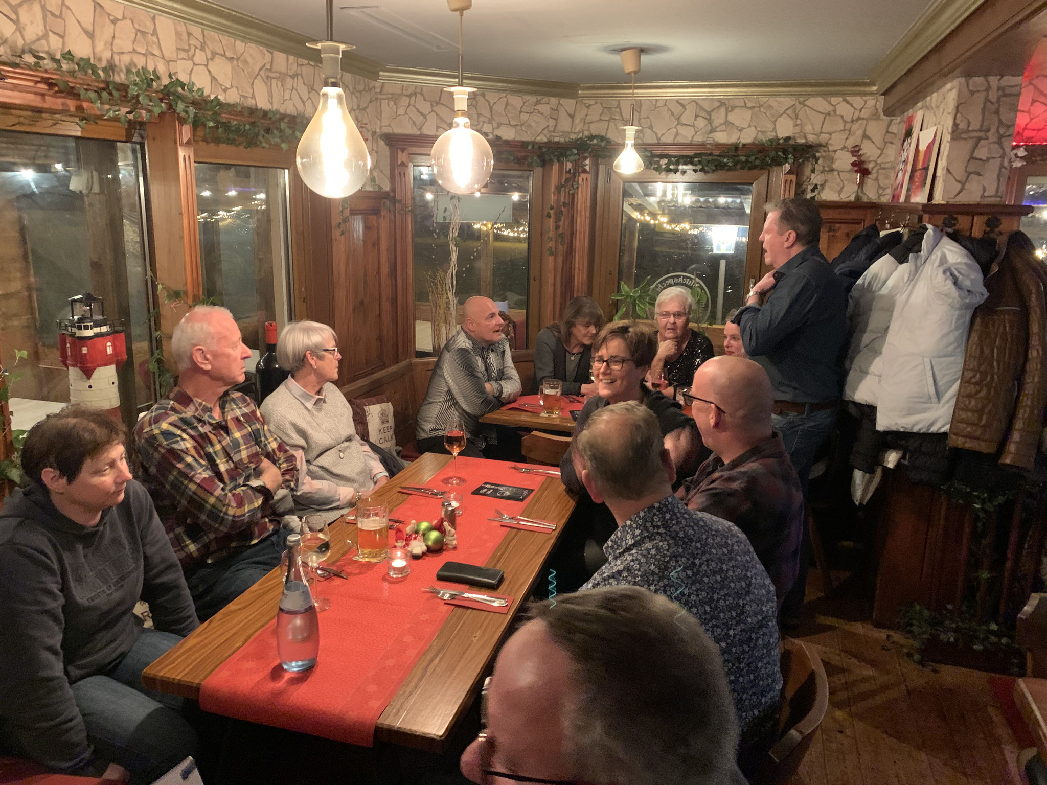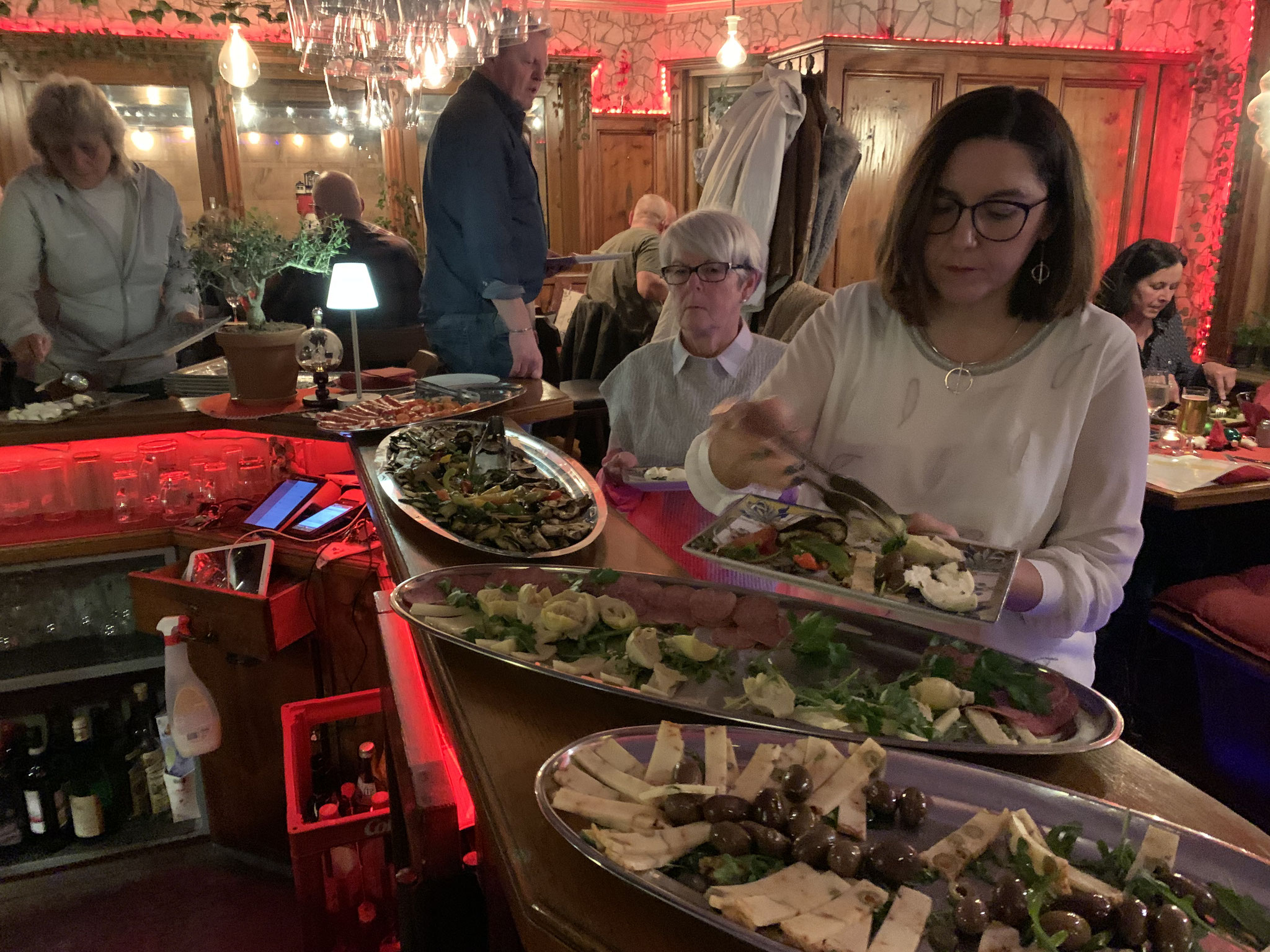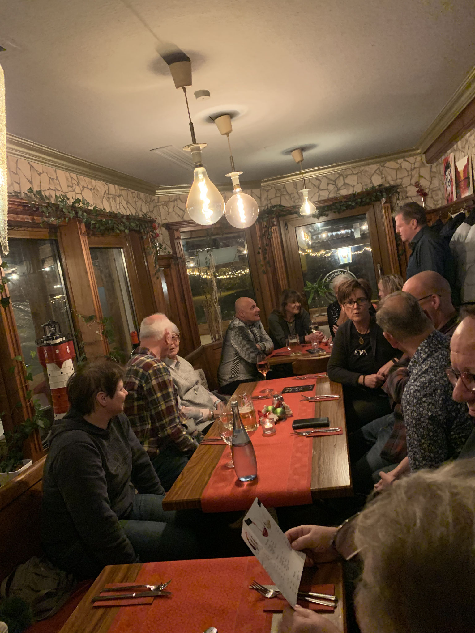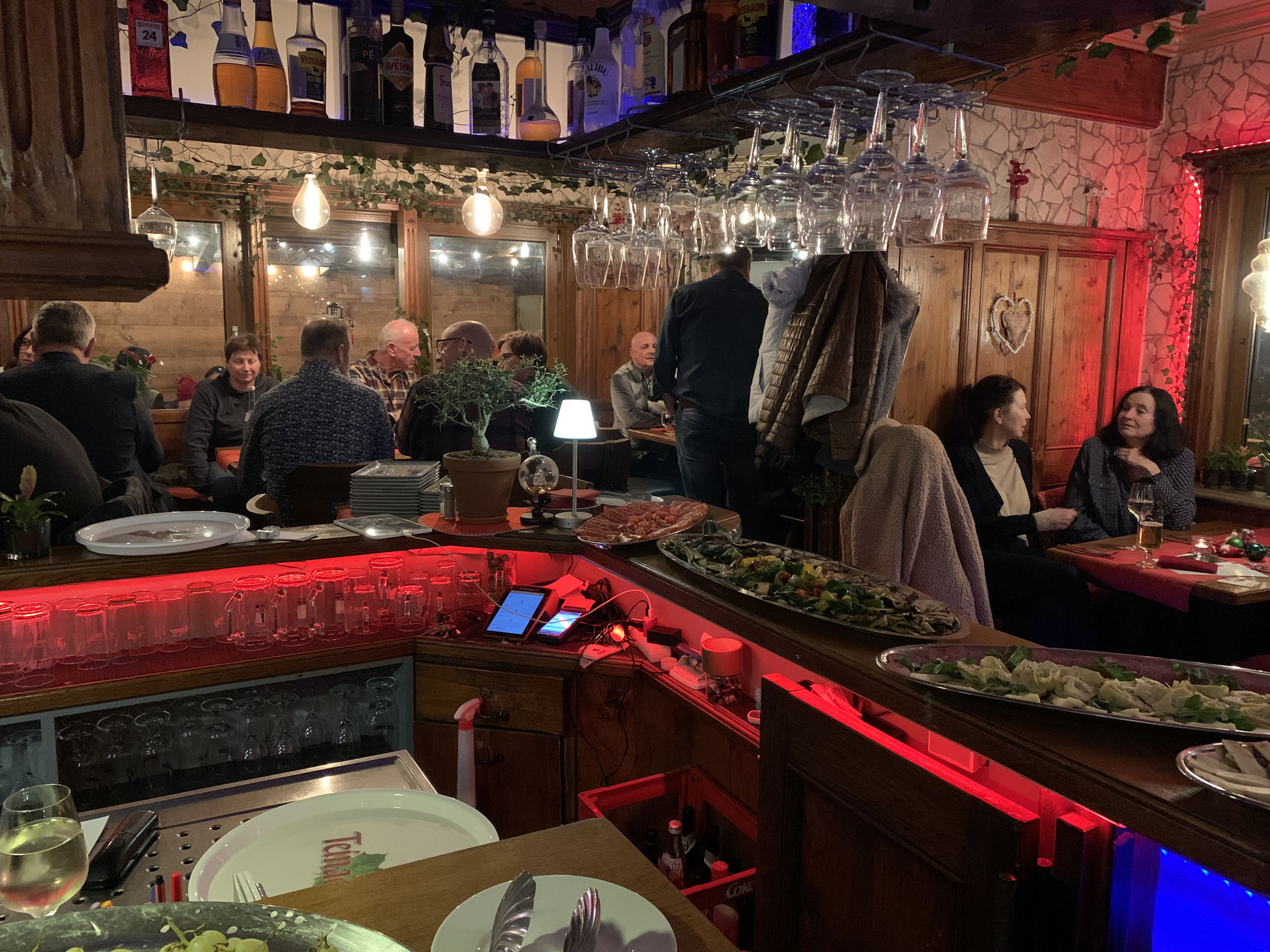 Am. 03.12 war das La Pinseria für unsere Weihnachtsfeier reserviert. Mit 26 Mitgliedern verbrachten wir einige herrliche Stunden in geselliger Runde. Michele verköstigte uns mit einem leckeren Vorspeise Buffett. Danach ging es mit italienischer Hauptspeise und anschließendem Tiramisu bzw. Pannacotta weiter. In der schönen Atmosphäre wurde Holger für seine ja schon Jahrzehnte lange Pressetätigkeit mit seinem wöchentlichen Beitrag im Blättle rund um unseren Boulesport geehrt.